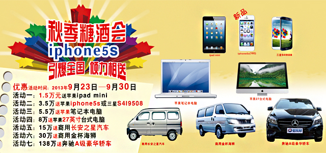 關(guān)鍵詞:秋季糖酒會唐人福引爆全國搶購潮圓滿結(jié)束 風(fēng)雨同路、感恩有您!秋季糖酒會超值優(yōu)惠活動今天圓滿結(jié)束,iphone5S、商務(wù)汽車全國傾力相送盛況空前熱烈、引爆全國搶購潮!活動禮品將于國慶后由專人聯(lián)系配送,感謝所有新老客戶的支持與信賴!唐人福全體同仁祝大家國慶節(jié)快樂!全國免費咨詢4008378887【唐人福】