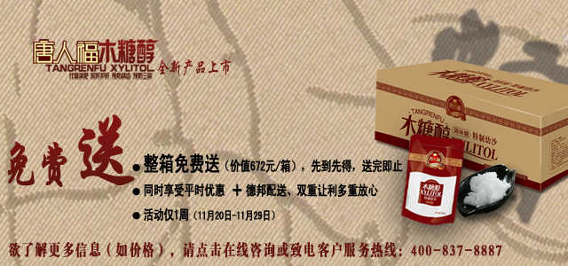 全新木糖醇上市免費(fèi)送編輯:唐人福 發(fā)布時(shí)間:2013-11-18 15:21:35 瀏覽次數(shù):3590人次