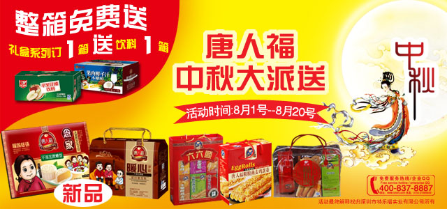 唐人福中秋大派送:無(wú)糖禮包系列一箱送一箱編輯:唐人福 發(fā)布時(shí)間:2014-08-02 14:14:56 瀏覽次數(shù):3338人次