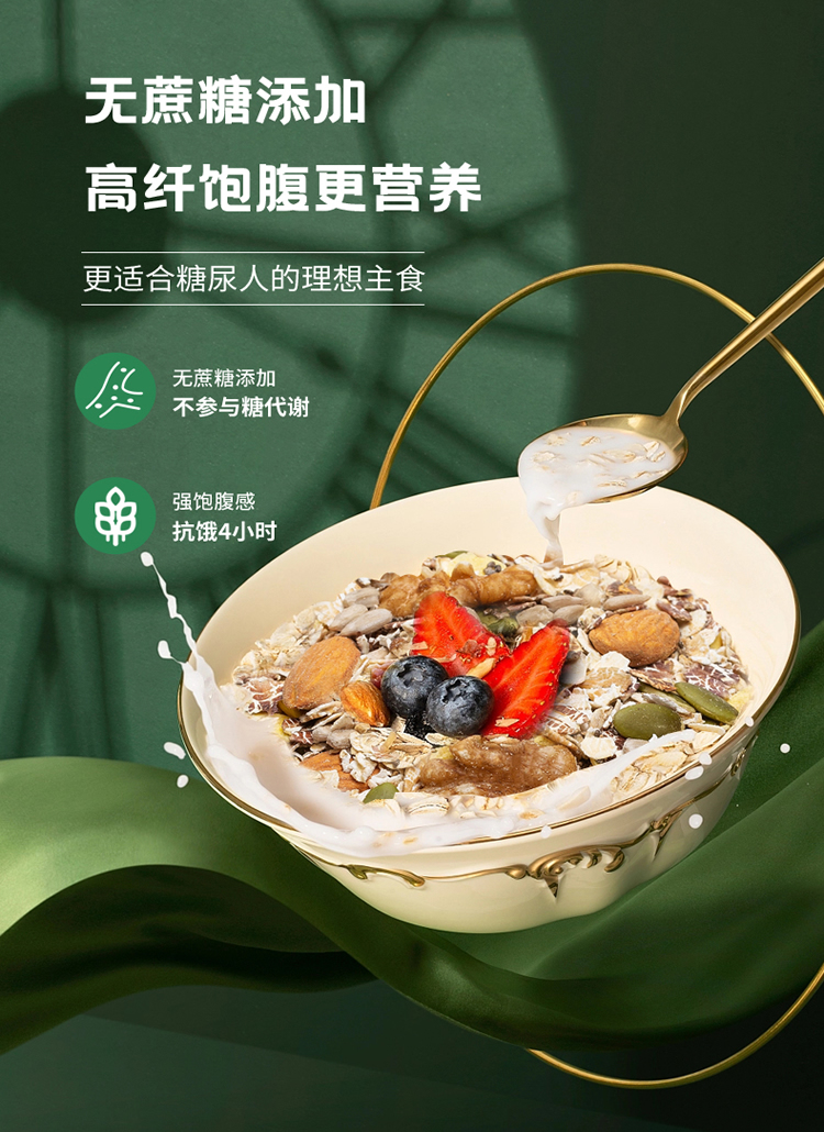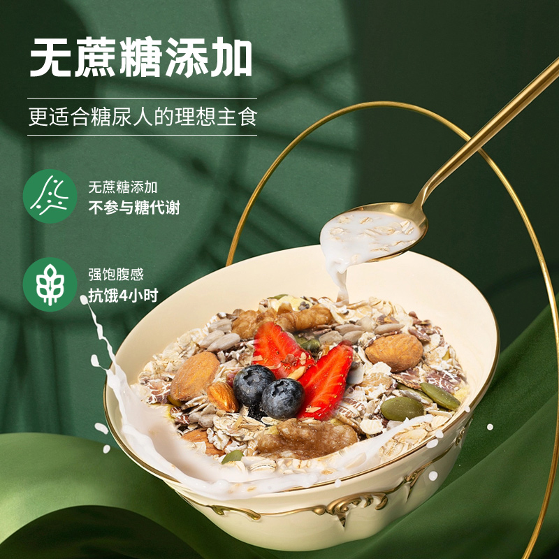 唐人福堅(jiān)果燕麥片,9中原料,無(wú)添加蔗糖,高纖飽腹,多重營(yíng)養(yǎng),更適合糖友的理想主食