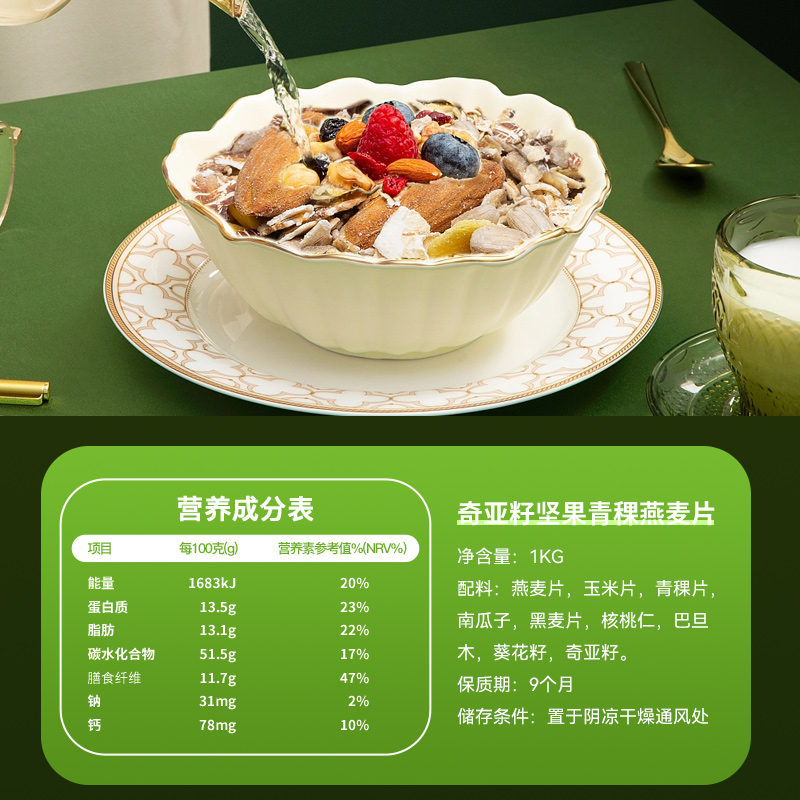 亞麻籽堅(jiān)果青稞燕麥片1kg/罐