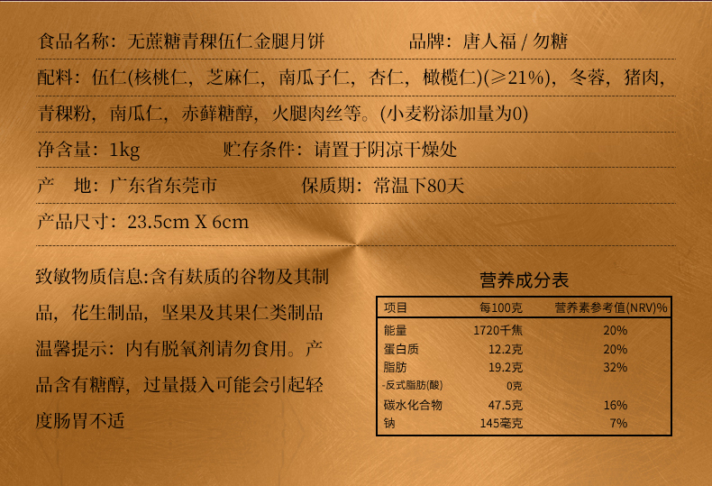 無蔗糖青稞五仁金腿月餅-勿糖大餅